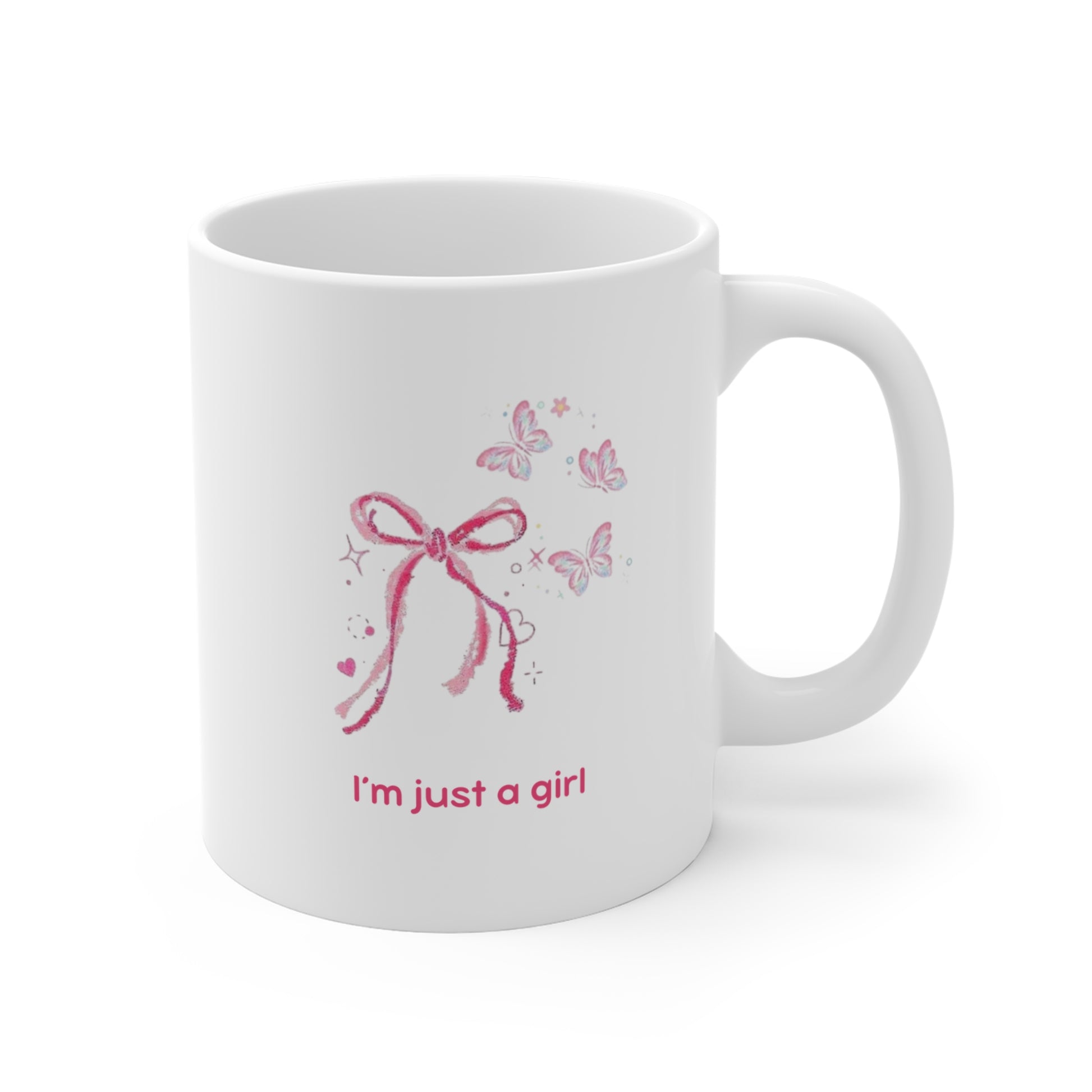 I'm Just A Girl Mug - Coquette Bow & Butterfly Cup (11oz)